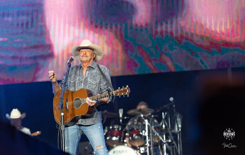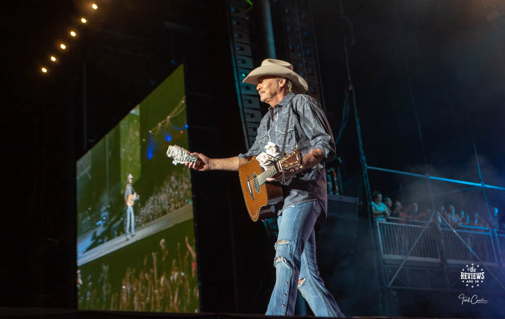 Early in his set, Alan Jackson told us all that he was going to try to play some country music. He added that his songs covered everything from love to hurt to death to drinking and partying and he was going to try to hit all of those marks.